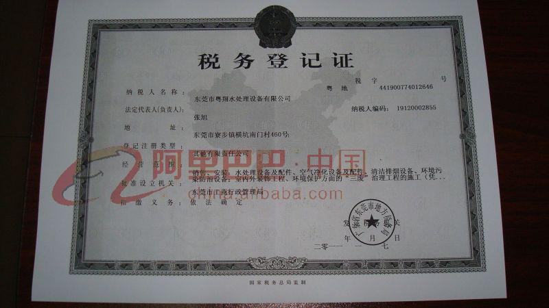 粵翔水處理稅務(wù)登記證