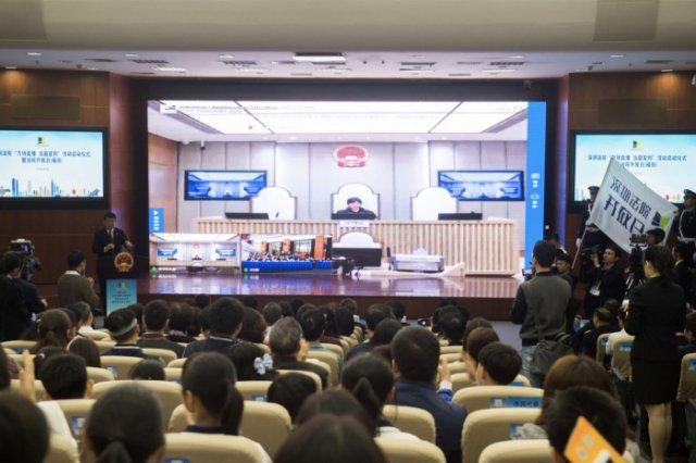 3月25日上午,深圳法院“萬(wàn)場(chǎng)直播?當(dāng)庭宣判”暨法院開放日活動(dòng)正式啟動(dòng),深圳市委副書記、市政法委書記李華楠,深圳市中級(jí)人民法院黨組書記、院長(zhǎng)萬(wàn)國(guó)營(yíng),福田區(qū)委副書記、區(qū)長(zhǎng)高圣元及50余名市區(qū)人大代表和政協(xié)委員參加活動(dòng)。本次活動(dòng)由深圳福田法院承辦,通過(guò)直播、VR體驗(yàn)庭審等很具科技感的方式,以及接地氣、可互動(dòng)的游院活動(dòng),吸引了近千名市民現(xiàn)場(chǎng)參與,近四萬(wàn)網(wǎng)友在線圍觀。